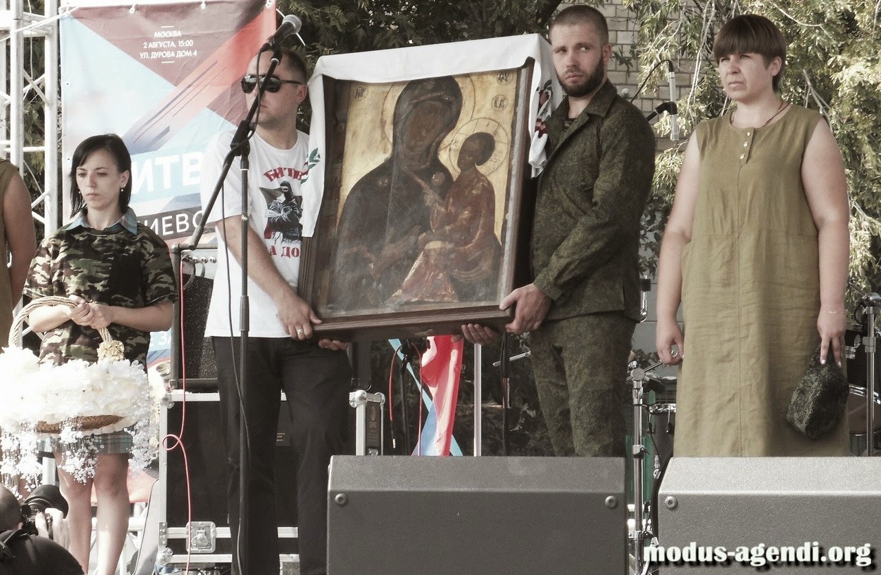 2 августа 2014 года в Москве при 34-градусной жаре и под палящим солнцем на улице Дурова собралось порядка пяти тысяч человек, готовых открыто выразить свою поддержку Новороссии и призвать к вмешательству России в вооруженный конфликт на Украине с миротворческой миссией. Начался митинг крайне символично — на сцену была поднята старинная Тихвинская икона Божией Матери, специально привезенная из монастыря, которая после мероприятия отправилась на Донбасс. Ведь именно чудотворная Тихвинская икона является защитницей северо-западных рубежей Российской империи, где сегодня льется кровь.